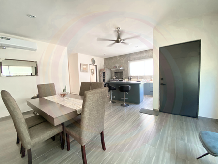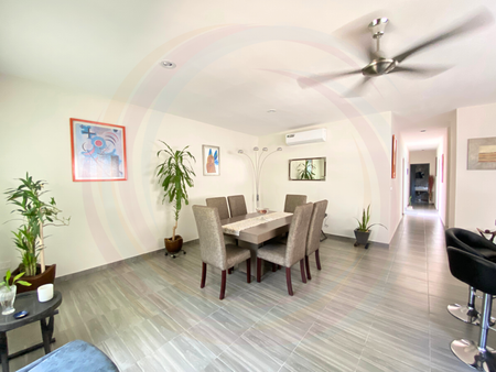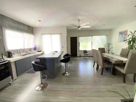 La casa, se distingue por techos altos que brindan frescura, iluminación natural y amplitud de espacios distribuidos en un solo nivel; de igual forma, se vende equipada y amueblada.