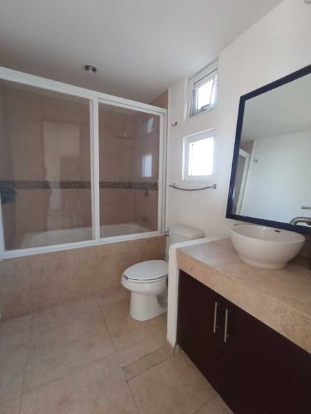 En planta alta, 3 recámaras con closet. La recámara principal con amplio espacio, walking closet y baño con tina, con salida a terraza independiente. Laso dos recámaras secundarias son realmente amplias con closet, comparten baño. Además de un cuarto adicional ideal para home office o área extra de almacenamiento.