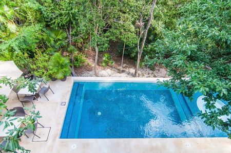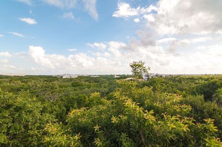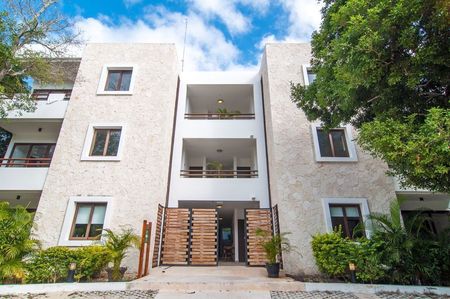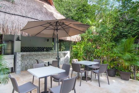 Este departamento de 2 recámaras y 2 baños tiene todo lo que podría desear en una casa de vacaciones o una residencia durante todo el año. Cuenta con un amplio diseño de concepto abierto con una cocina totalmente equipada con una isla, una sala de estar y un comedor separados y una terraza con jardín privado. Los dormitorios tienen closets y baños en suite. Este departamento cuenta con pisos de cerámica y acabados de primera calidad que son duraderos y fáciles de mantener. Se ofrece a la venta completamente amueblado y equipado con ventiladores de techo y aire acondicionado. El edificio tiene una hermosa área de piscina comunitaria con terraza y una palapa con sombra en la planta baja, así como una gran terraza en la azotea con jacuzzi, un área para tomar el sol y vistas panorámicas a la jungla.