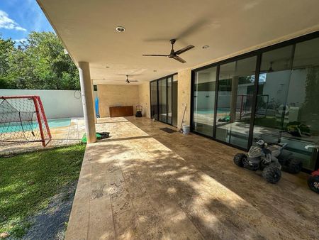 El segundo nivel también ofrece un family room con terraza, ideal como sala de TV, estudio o área de descanso. En la parte posterior, la casa tiene un cuarto de recreación perfecto para juegos, gimnasio o estudio creativo, además de un baño completo para la piscina.