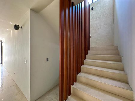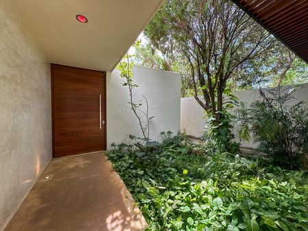 Al entrar, te recibe un gran vestíbulo que conecta con la sala, comedor y una cocina de excelente tamaño, pensada para reuniones y vida familiar. La casa cuenta con tres recámaras, dos en planta baja con fácil acceso y vistas al jardín, y una recámara principal en planta alta con terraza privada y mucha iluminación natural.