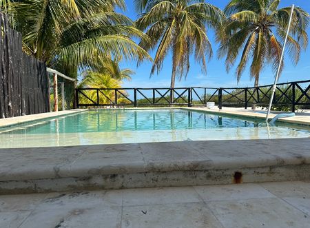 Una recámara, sala, comedor, cocina, 1 baño completo, estacionamiento para 4 autos. Dentro del pueblo a 8 cuadras del centro. Espectacular vista al golfo de México.