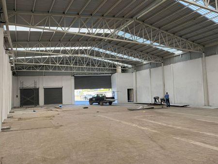 Tiene una superficie de 720m2 de terreno, de los cuales 640m2 techado con 8m de altura.