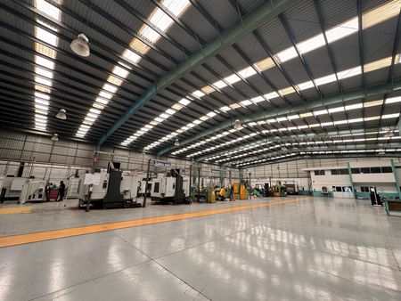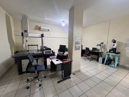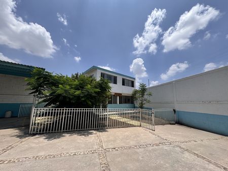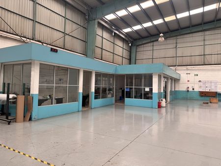 En la NAVE PRINCIPAL: Cuenta con Piso Epoxicos, oficinas de 1 piso de 70m2, espacio para área de producción, área de oficinas de 2 niveles con privados, sala de juntas, medios baños, aires acondicionados, 15cm armado con malla metálica.