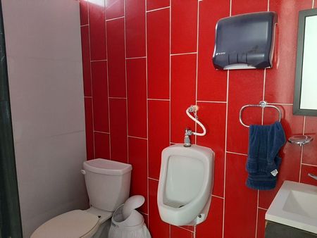 2 áreas privadas en planta baja y 2 en planta alta, una de ellas con baño completo. Aires acondicionados en 3 áreas, ventilador en la cuarta. Cocina, baños de empleados de bodega con regadera y área de lockers.
