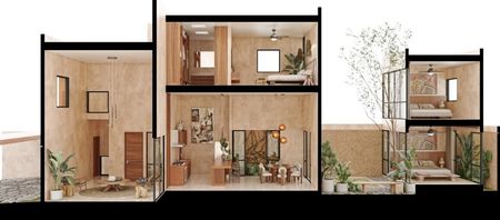 BOLERA es un conjunto de 7 townhouses en Temozón, con techos de doble altura, áreas privadas, piscina interior y acabados en madera que dejan entrar luz natural que dan una armonía cálida y ambiental.