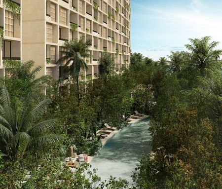 El balance de vivir entre areas verdes. Okün se ubica sobre Blvd. Colosio, avenida principal de Cancun, a espaldas de la hermosa laguna Nichupte, rodeado de selva y manglares, por lo que te sentirás acompañado de naturaleza.