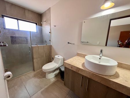 En el nivel medio se encuentra la recámara principal con baño y walk-in clóset, además de dos recámaras secundarias, cada una con su baño y clóset. También están el área de lavado techada y el área de tendido oculta.