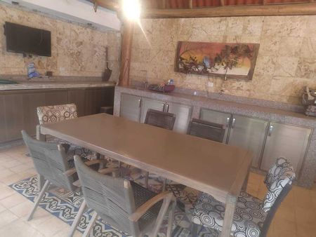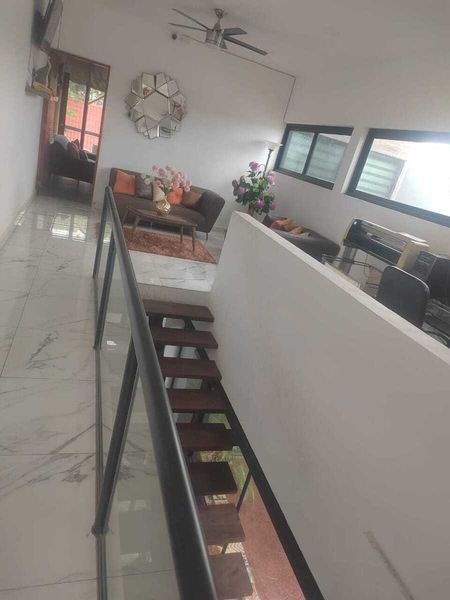 12 paneles solares, 1 cisterna, 2 tinacos, Asador- Bar- Piscina, Hidro, portón eléctrico, 8 cámaras, cocina vestida, horno, microondas, 2 lavadoras y una secadora grande, palmeras, lluvia de oro y 3 palmeras, hamaqueros