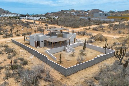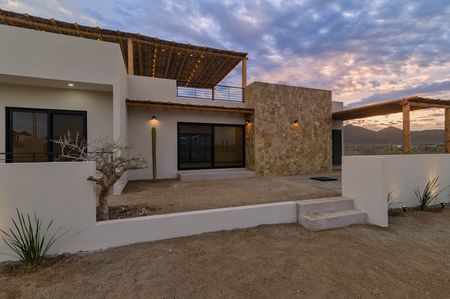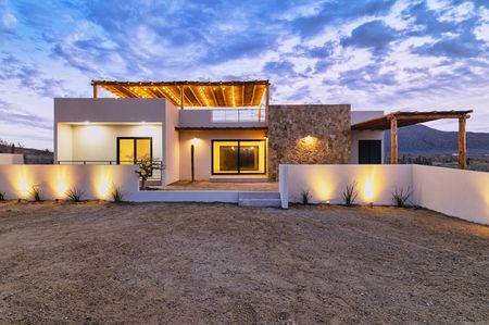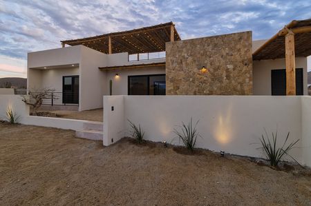Descubre esta hermosa casa en Cerritos, Baja California Sur, conocida por sus playas de arena dorada, famosas como un paraíso para surfistas y amantes de los deportes acuáticos, perfecta para quienes buscan vivir en armonía con la naturaleza en una comunidad encantadora y tranquila. Con un amplio jardín equipado con un sistema de riego automático, podrás disfrutar de un exuberante entorno verde sin esfuerzo. Relájate bajo las pérgolas o pasea por el jardín mientras el sol se eleva sobre las majestuosas montañas, ofreciendo un amanecer impresionante. Ubicada cerca del mar, esta propiedad es el refugio perfecto para disfrutar de la tranquilidad y la belleza de la costa.