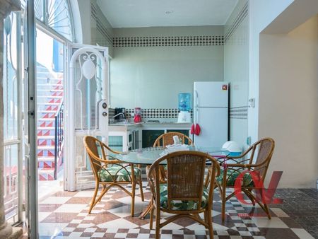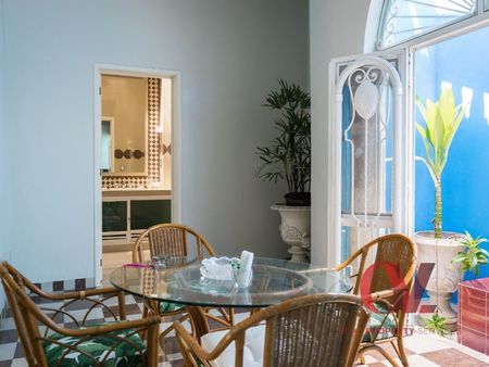 La casa está completamente amueblada y equipada, lista para entrar a vivir. Ofrece un amplio dormitorio principal con baño completo. Una habitación más grande que también se puede utilizar como un segundo dormitorio. Además, la casa ofrece una acogedora sala de estar, una cocina abierta hacia el comedor y un segundo baño completo. Los techos altos transmiten en combinación con los pisos de mosaico originales y las aplicaciones de estuco fino el ambiente de los viejos tiempos. Los muebles y las aplicaciones de la sala de estar y el dormitorio principal están muy bien decorados y lo resaltan aún más.