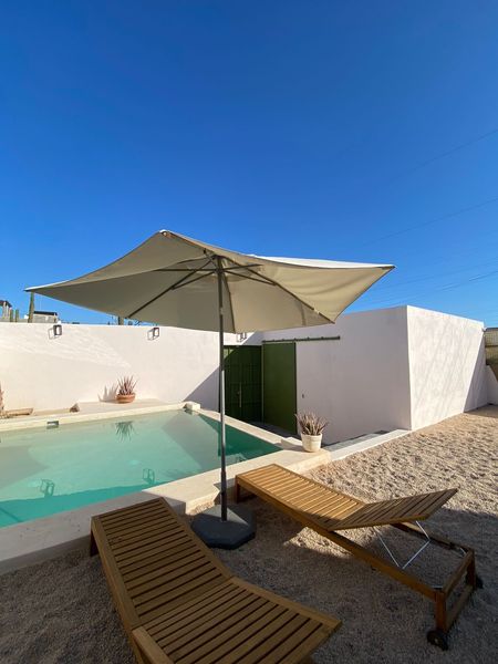 Cuenta con 1 recamara principal con aire acondicionado, vestidor con closet y baño privado, la segunda recamara cuenta con closet aire acondicionado, otro baño completos, 1 sanitario junto al área de alberca.