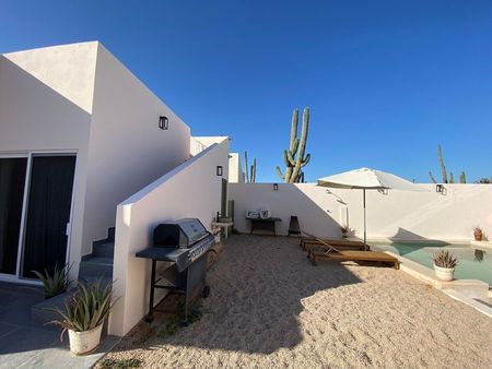 En el exterior se puede disfrutar amplio patio con alberca, una espaciosa bodega y estacionamiento hasta para 4 autos o para resguardar alguna lancha o bote. con area de sombreada con pergolas.