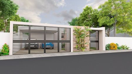 Cochera techada, canceles en baño, cocina con gavetas, piscina, ante fachada con portón eléctrico