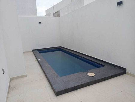 Cuenta con 3 recámaras con vestidor, 3 baños completos, sala comedor, cocina integral equipada con estufa, campana y alacena, medio baño de visitas, área de T.V., cuarto de servicio con baño completo, jardín con alberca y terraza, garage techado con portón eléctrico para 2 autos