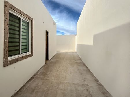 En el exterior encontrarás una cochera con pérgola, espacio para dos autos y un corredor lateral amplio. Así mismo, la propiedad cuenta con cerca eléctrica en la barda perimetral, brindando seguridad y tranquilidad con vigilancia 24/7.
