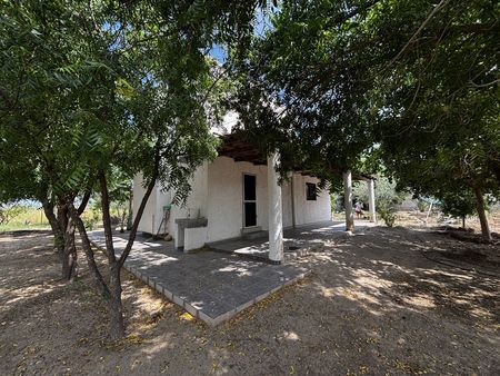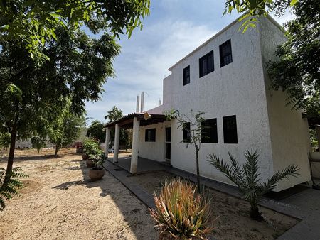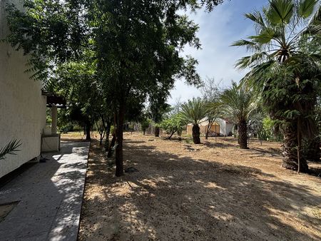 El terreno esta cercado por malla ciclonica por tres lados y una barda de block en el cuarto. Cuenta con una Amplia diversidad de árboles y plantas, algunos de más de 15 años, entre los que destacan **palmas datileras, árboles de neem, olivos negros, tamarindo y granado y un bello olivo (Olea europaea, nopales y cítricos**, ofreciendo un ambiente natural, fresco, agradable y sombreado.