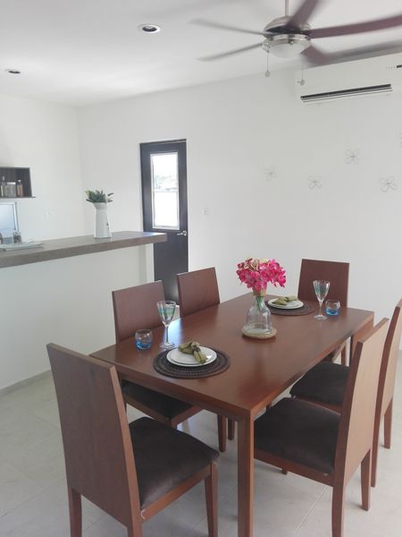 Biodigestor, pisos cerámicos , acabados exteriores en 3 capas, cocina integral, gabinetes, fregadero y cubierta de pasta en barra desayunadora y cocina