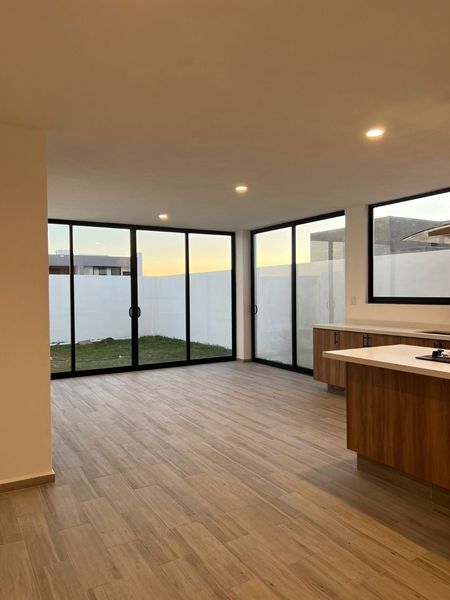 Planta baja: Sala - Comedor, cocina de Quarzo con isla, 1 baño completo, estudio ó 4ta recamara, cuarto de servicio y cuarto de lavado, jardín trasero.