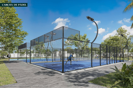 Caseta de vigilancia, petpark, circuito de joggin, piscina tipo resort, área de juegos infantiles, área de picnic, áreas verdes, cancha multiusos, 2 canchas de pádel, área de asadores en alberca, cancha de futbol,casa club.