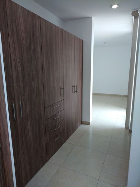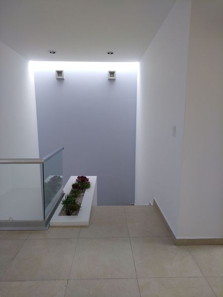 Medio baño para visitas en el área de sala, amplia escalera con iluminación natural conduce a distribuidor de recamaras, la principal, con balcon, amplio vestidor y closet y baño completo con canceles de cristal templado.
