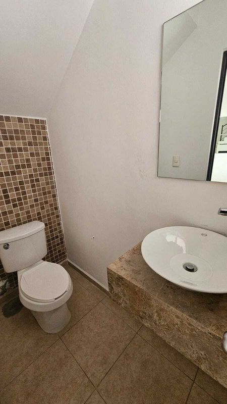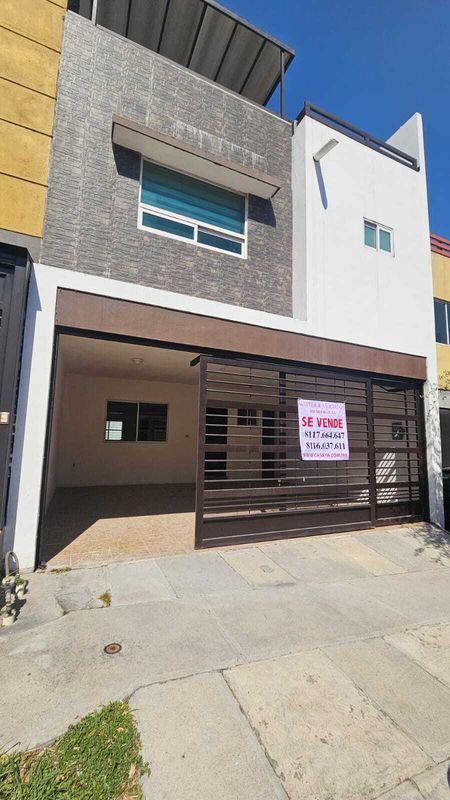 Hermosa casa distribuida en 3 plantas, cuenta con 4 recámaras, 2.5 baños, sala, comedor, cocina integral en madera con barra desayunadora y despensero. En 2do piso tiene estancia, las 3 recámaras cada una con ropería, la principal cuenta con baño vestidor y las recámaras secundarias comparten baño. En 3er piso está la 4a recámara, el área social con estancia, terraza semitechada, asador forrado en azulejo, barra, cuarto de lavandería con lavadero. Tiene cochera techada para 2 carros con reja al frente, pasillo lateral con reja y patio.