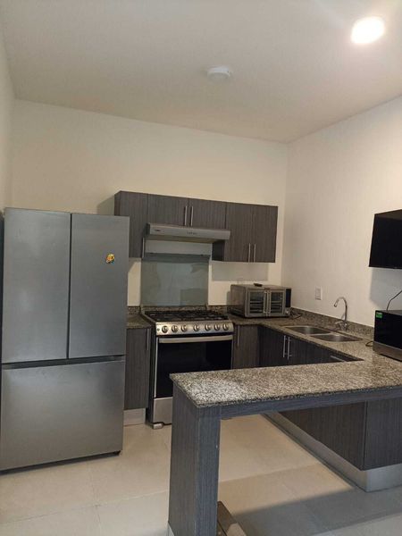 Amueblada, amplia sala comedor, cocina integral, cuarto de lavado, medio baño