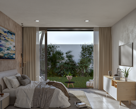 Recámara principal con closet vestidor y baño completo