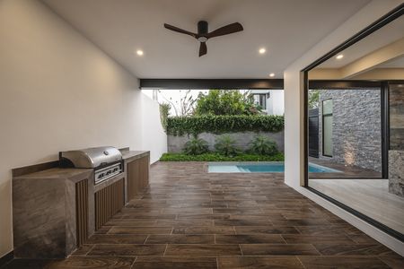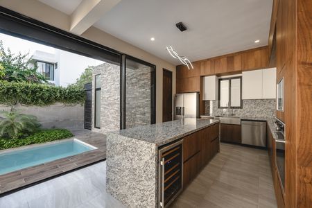 - Electrodomésticos de acero inox. (microondas, lavavajillas, tarja, cava de vinos, horno de gas, parrilla de gas, campana, extractor)