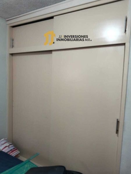 Casa de 3 recámaras con piso laminado en las recámaras, loseta en sala, comedor, cocina y baños, clóset en recámara principal y baño completo, otro baño completo, ambos con puerta de regadera, en la 2a. recámara con clóset hechizo (sin puertas) la 3a no tiene clóset, cocina con la tarja de aluminio únicamente. Boiler, bomba de agua y tinaco. La casa cuenta con alarma y 4 cámaras, patios encementados, estacionamiento para un carro, bardeada atrás y un costado.