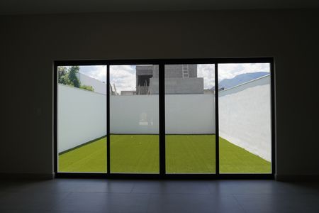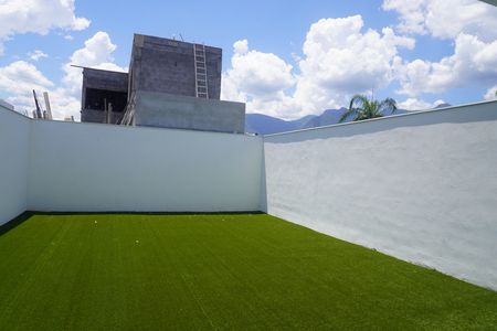 Cuenta con césped artificial en área de patio.