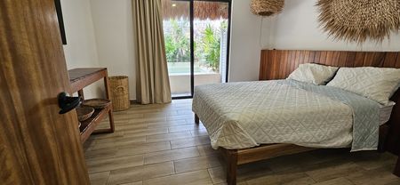 - Recámara con puerta corrediza y salida a la piscina.