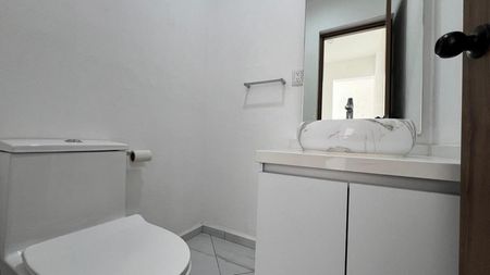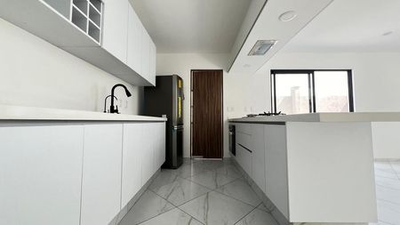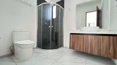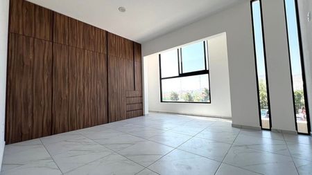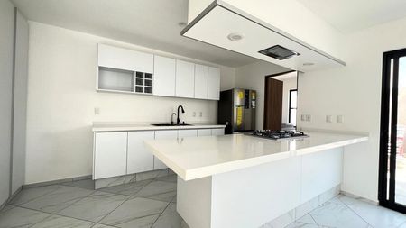 Planta baja: Recibidor, estudio para home office, armario de entrada, ideal para las mochilas o bolsas de los niños, chamarra con cajonera y puerta, 1/2 baño para visitas, sala comedor muy amplio, cocina integral en concepto abierto con amplia alacena, barra desayunador y cubierta de cuarzo, cuarto de lavado con closet para cubetas y escobas, patio trasero, fogatero que sirve también como asador, cochera para 2 autos y área jardín.