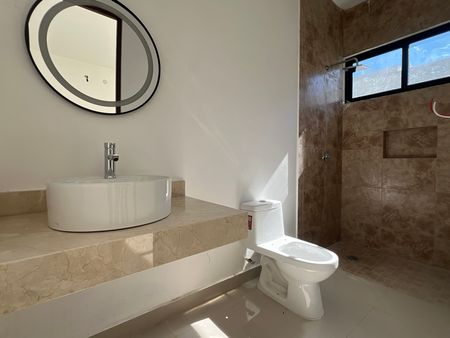 - Recámara principal con closet vestidor y baño completo con cancel corredizo para acceso a jardín trasero.