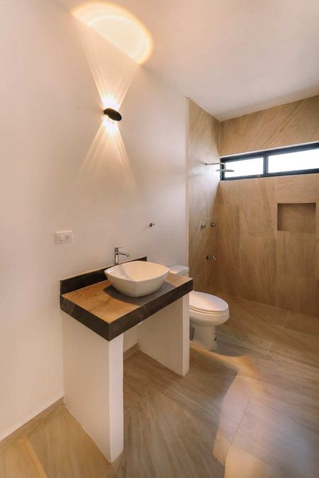 .Recámara principal con baño completo y ventanal con acceso a la piscina