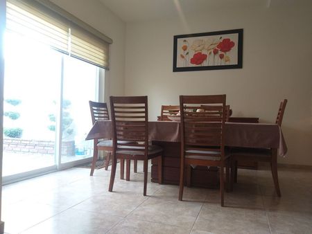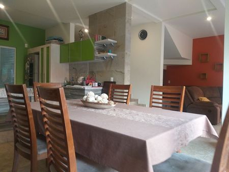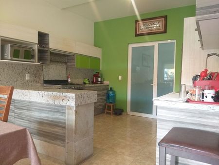 Sala, comedor, cocina, medio baño, patio, cuarto de lavado y estacionamiento techado.