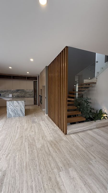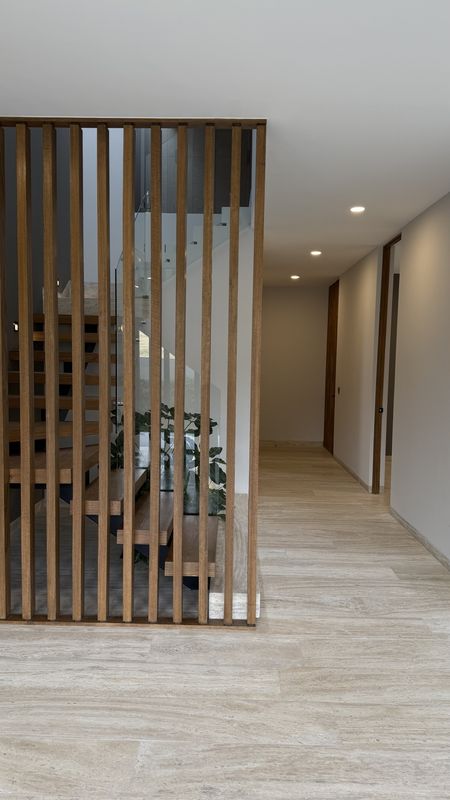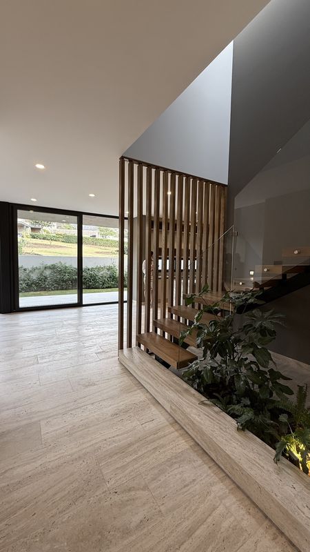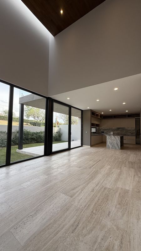 En la planta baja, disfruta de una sala con doble altura, llenando el espacio de luz y amplitud.