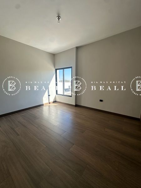 Recámara principal en planta baja con baño y vestidor · 1 medio baño en planta baja · Cocina equipada · Sala · Comedor · Lavandería · Estancia de TV · Roof garden · Cochera techada para 2 autos.