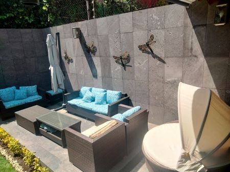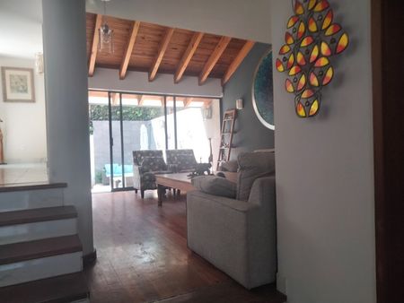 La casa tiene un hermoso jardín de 100 mts y una terraza con vistas a los volcanes.