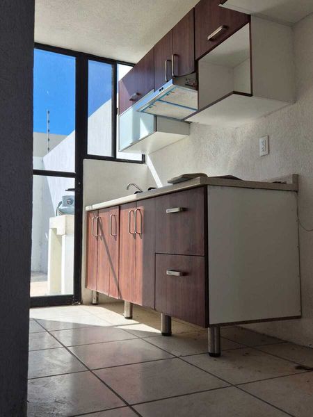 En planta baja cuenta con recamara medio baño, sala, comedor, cocina equipada y patio de servicio con un excedente.