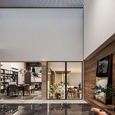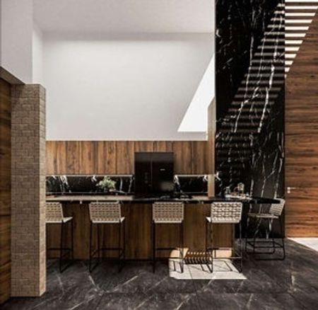 • Fachada exterior de marmol travertino y acabados interiores de marmol ypiedra de la región