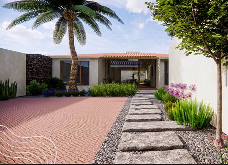 Las especies vegetales fueron seleccionadas para mantener un ambiente verde y fresco todo el año, promoviendo armonía, bienestar y serenidad.