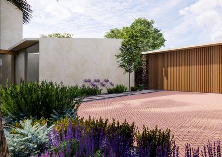 Los jardines frontal y posterior rodean la casa y se funden con los interiores mediante amplios ventanales y terrazas.