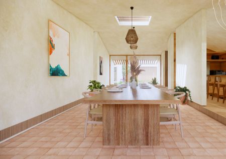 Comedor integrado a la cocina y terraza