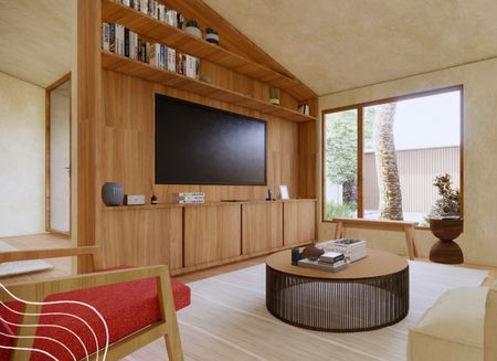 Diseño arquitectónico contemporáneo con materiales naturales.