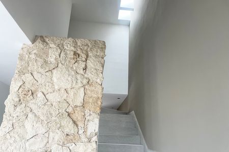 Planta Baja: Cochera doble techada, sala con muro de acento de piedra natural, recámara con vestidor y baño completo, comedor doble altura, cocina con alacena, amplio jardín, pasillo de servicio.