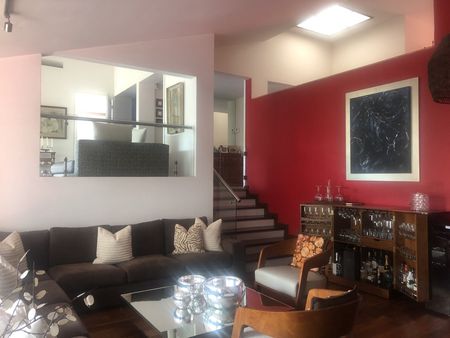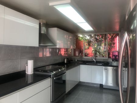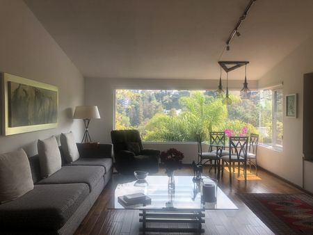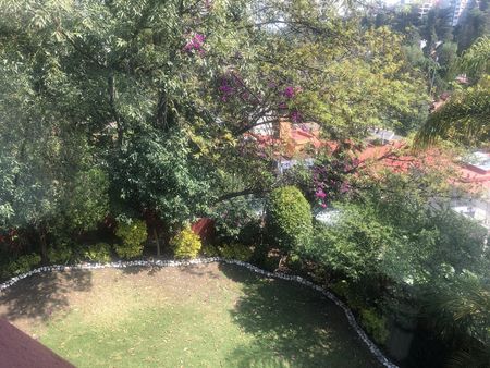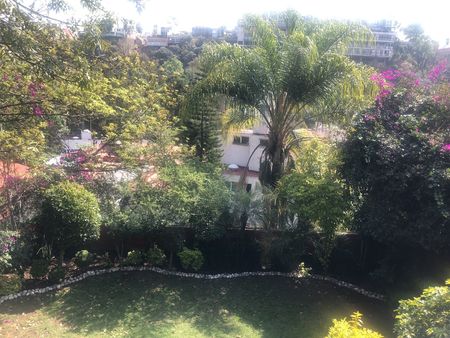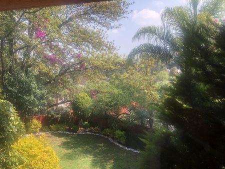 Hermoso jardín en la parte trasera con extraordinaria vista. Adicional cuenta con elevador, 4 lugares de estacionamiento techados y paneles solares.