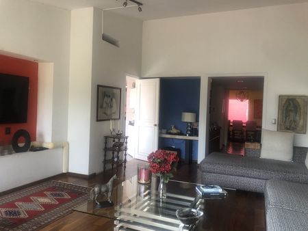 Cuenta con 4 recámaras, cada una con su baño y 2 de ellas con walking closet de muy buen tamaño, 1/2 baño de visitas, Family Room, cocina cerrada, amplia sala y comedor con doble altura, chimenea, cuenta con 3 bodegas, salón de fiestas o usos Múltiples, cuarto de servicio con baño completo y área de servicio para lavado y planchado.