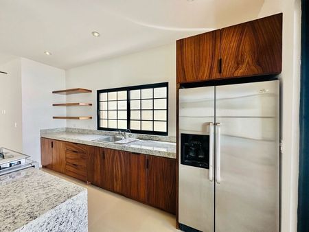 Imagina una casa, ubicada en una zona serena y segura. Sus acabados de lujo, resplandecen con la calidez de la madera de parota, que adorna cada rincón. Con dos espaciosas recámaras y dos baños completos, además de un tercer espacio para estudio o recámara, ofrece un refugio de confort y tranquilidad. En el exterior, la alberca invita al relax, es perfecta para reuniones con amigos y familiares. Las terrazas pergoladas ofrecen espacios adicionales para disfrutar del aire libre. Y para completar esta maravilla, una cochera para dos autos brinda comodidad y seguridad a sus residentes. Esta casa es el sueño hecho realidad para quienes buscan un hogar de lujo en un entorno tranquilo y seguro.