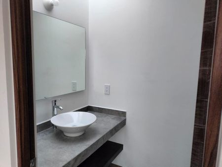 Sala, Comedor, Cocina Equipa con barra de granito y barra desayunador, alacena, medio de baño de visitas, bodega iluminada bajo la escalara, recámara con vestidor y baño completo, la cual tiene vista al jardín de la casa, área de lavado, pasillo lateral de servicio, cisterna, 3 lugares de estacionamiento.